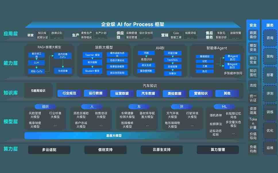 端到端的一站式AI工作空间深度融合了从企业战略规划到日常经营的全流程业务板块,,,定向解决车企内部领域多、、、部门多、、、、链条长、、、、场景碎片化等难题,,,,支持车企快速构建以AI为核心的生产力写作体系,,实现任务执行与AI能力的无缝集成与交互