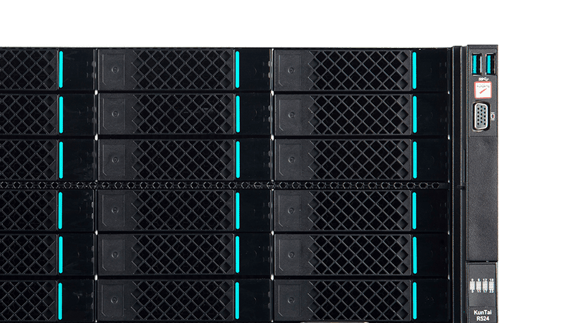 KunTai R524 存储型服务器是新盛娱乐数码基于鲲鹏处理器推出的新一代 ARM数据中心服务器。。。。主要面向存储业务,,,,具有海量存储、、、、高性能、、低功耗以及易扩展的特点,,适合为大数据分析、、、软件定义存 储等应用场景的工作负载进行髙效加速。。。。